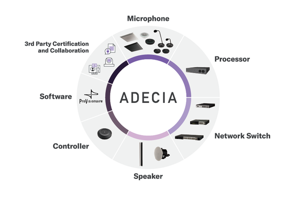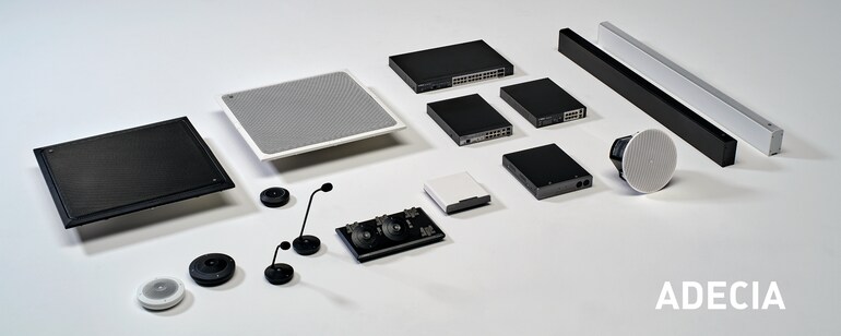 ADECIA ist eine umfassende Konferenzlösung, die Audio von der Eingabe bis zur Ausgabe und Geräteverwaltung sowie die nahtlose Integration von Geräten und Systemen von Drittanbietern anbietet.